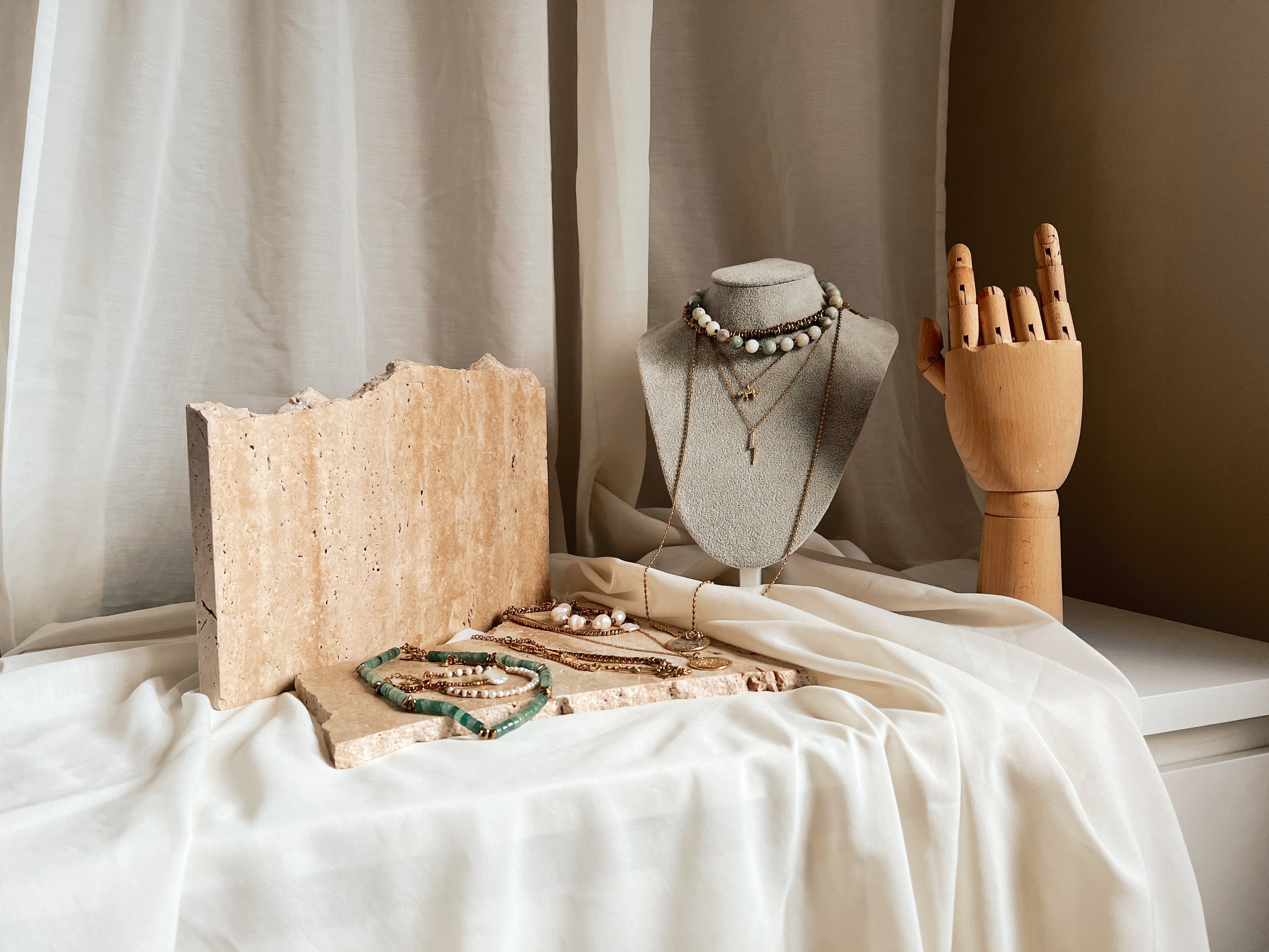 All pieces are made with stainless steel, semi-precious stones, and natural materials – durable and long-lasting, but still deserving of care.